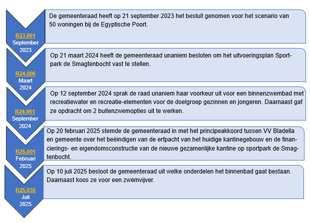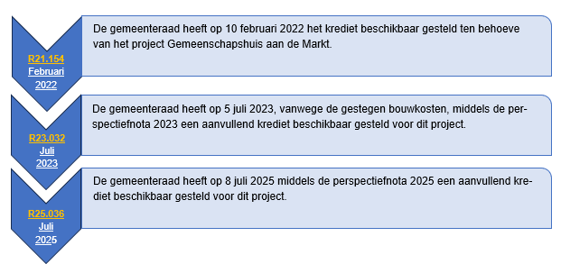 In dit onderdeel wordt inzicht gegeven in recentelijk door de raad genomen/te nemen besluiten m.b.t. dit project.